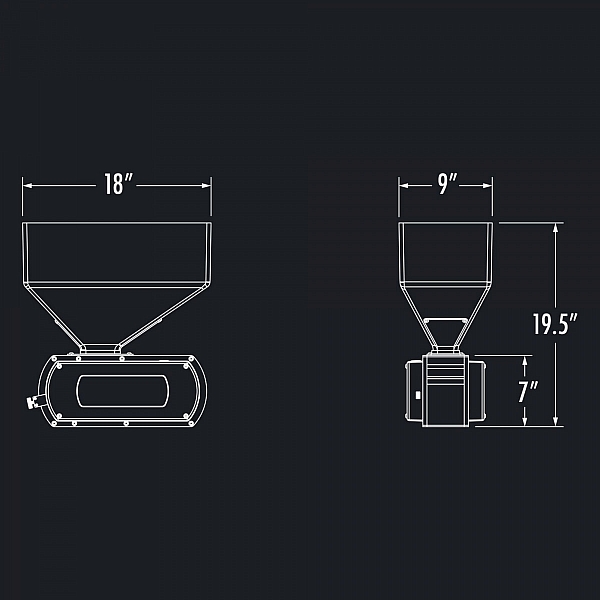 Kapacita zásobníku 11,3 kg: Mlýn na obilí Ss Brewtech obsahuje 4 mm silnou násypku z ABS, která je konstrukčně pevná a lehká. Mlýn na obilí Ss Brewtech, navržený tak, aby pojal až cca 11 kg obilí najednou, prošel prototypovým testováním při zpracování zhruba 160 kg ječného sladu za hodinu. Což je přibližně 25 kg pytel každých 10 minut. To je ideální pro velikosti dávek od 19 litrů (5 galonů) do 600 litrů (5 bbl).