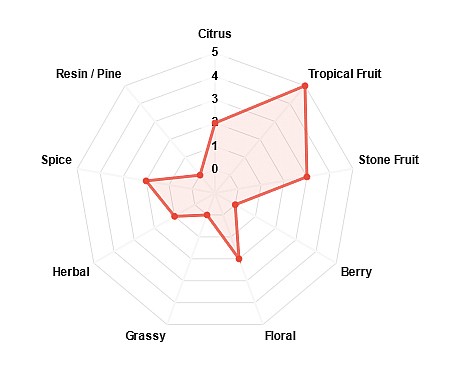 Chmel Styrian Wolf má intenzivní ovocné a květinové tóny včetně chutí sladkého tropického ovoce a komplexních vůní manga, kokosu, citronové trávy, květu černého bezu, a dokonce i nádech fialky.